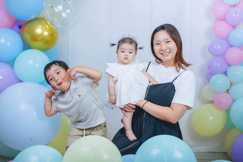たくさんの風船に囲まれた撮影会では、プロのカメラマンに緊張しながらも、最高の笑顔をパシャリ!