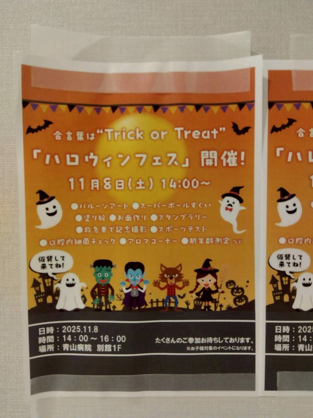 青山病院『ハロウィンフェス』が2025年11月8日(土)に開催されますよ♪