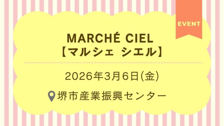 堺市北区の堺市産業振興センター イベントホールにて、ベビー・キッズとママのマルシェ marché ciel 【マルシェ シエル】2026年3月6日(金)に開催されるそうですよ♪