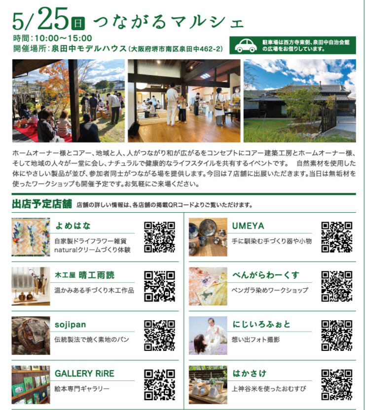 ホームオーナー様とコアー、地域と人、人がつながり和が広がるをコンセプトにコアー建築工房とホームオーナー様、そして地域の人々が一堂に会し、ナチュラルで健康的なライフスタイルを共有するイベントです。