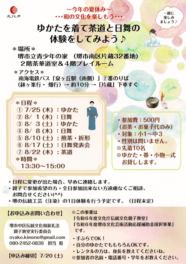 大好評の【茶道・ゆかた着付け体験教室】が夏休みに開催されます!