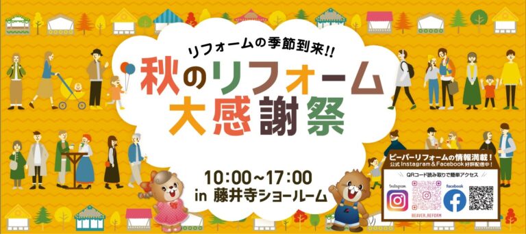 ビーバーハウスグループのビーバーリフォームにて10月8日・9日に秋のリフォーム大感謝祭が開催されます!