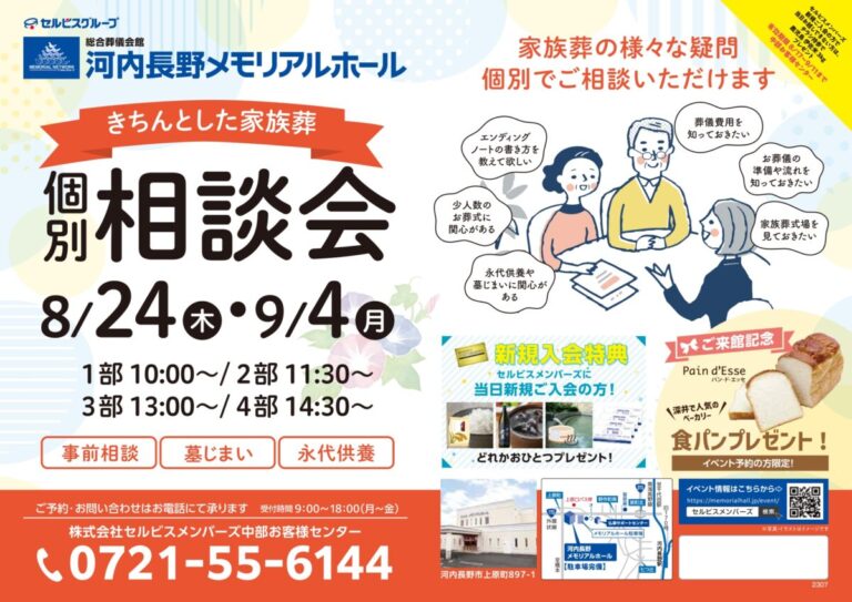 セルビスグループのメモリアルホールでは毎月さまざまな相談会を実施しています。
