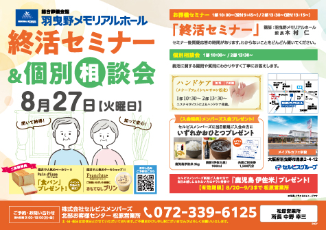 この記事では羽曳野メモリアルホールの「終活セミナー&個別相談会」をご紹介します。