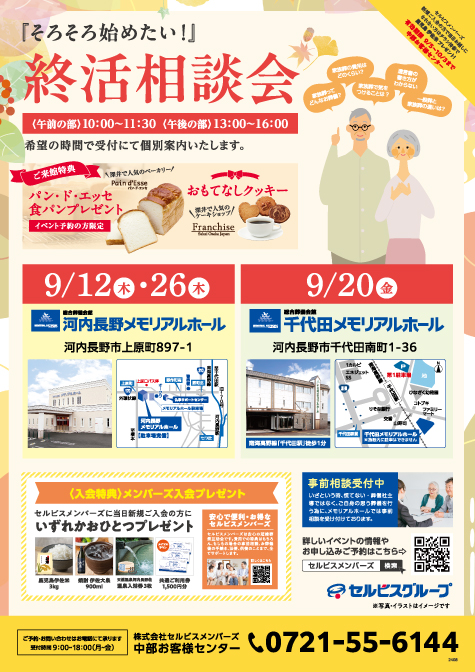 この記事は、河内長野メモリアルホール、千代田メモリアルホールで開催される個別相談会をご紹介します。