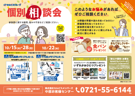 この記事は、河内長野メモリアルホール、千代田メモリアルホールで開催される個別相談会をご紹介します。