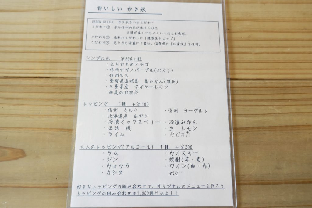なにやらGREEN KETTLEのかき氷は、
