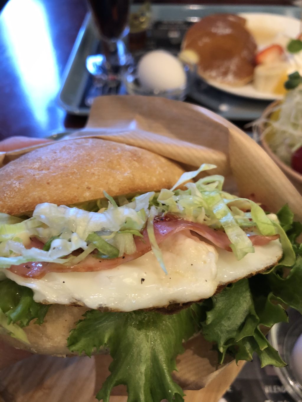 私は「ベーコンエグ」+サラダ+コーラを。