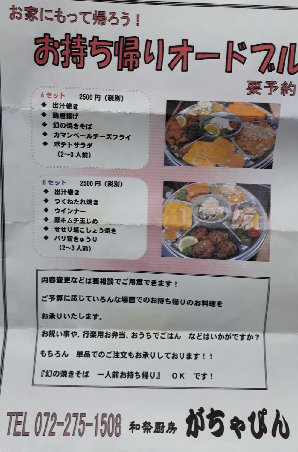 各種一品料理や、セットになったオードブルなんかもテイクアウトできますよ!