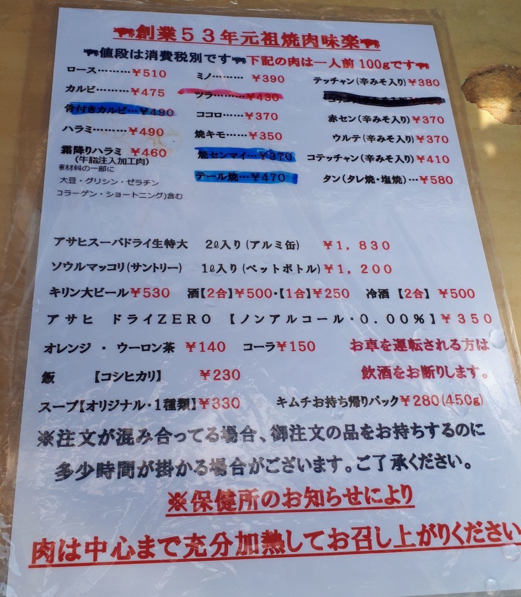 焼肉 味楽