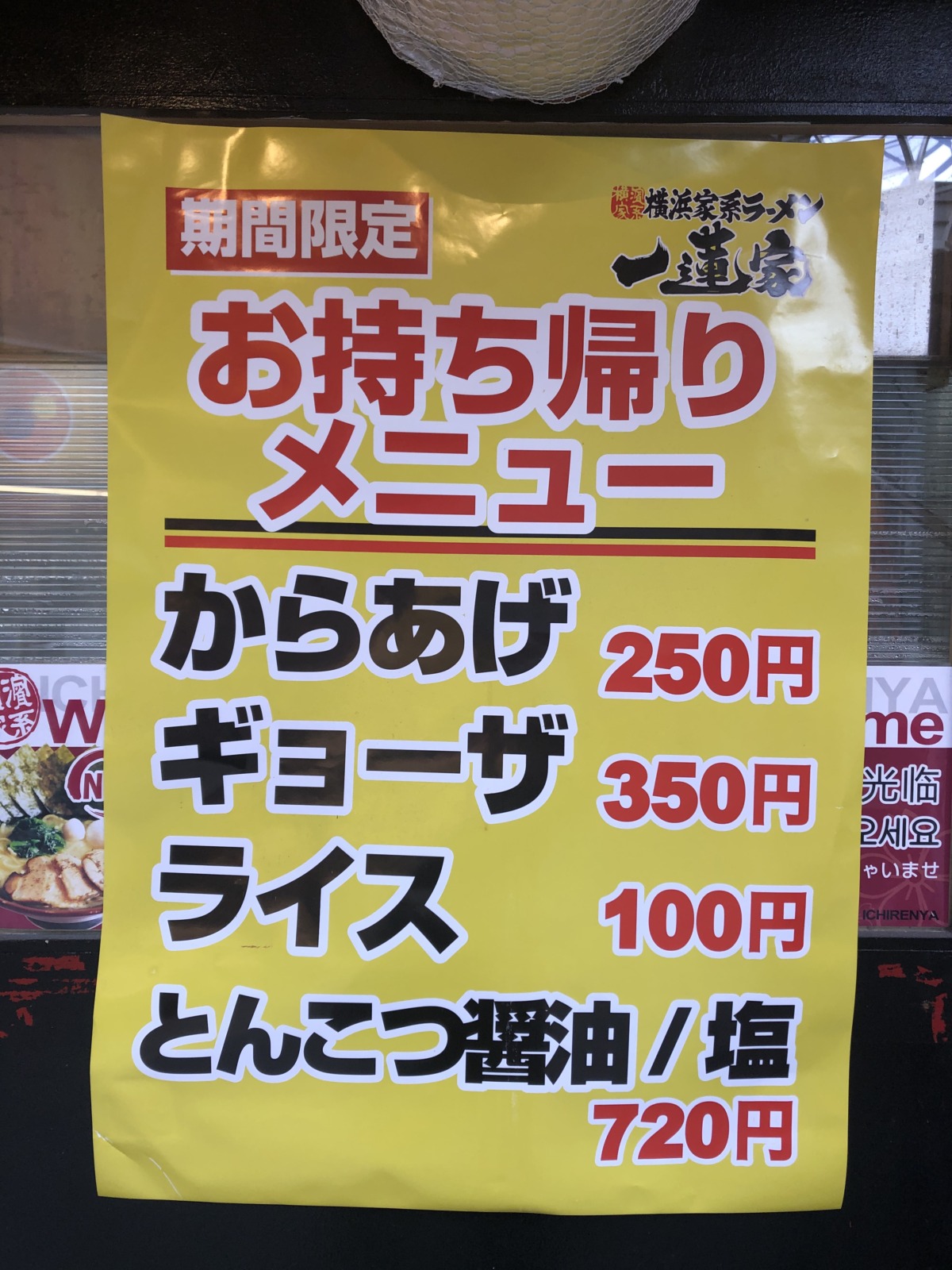 堺東商店街にある、横浜家系ラーメン「一蓮家」でお持ち帰りできますよ~♪