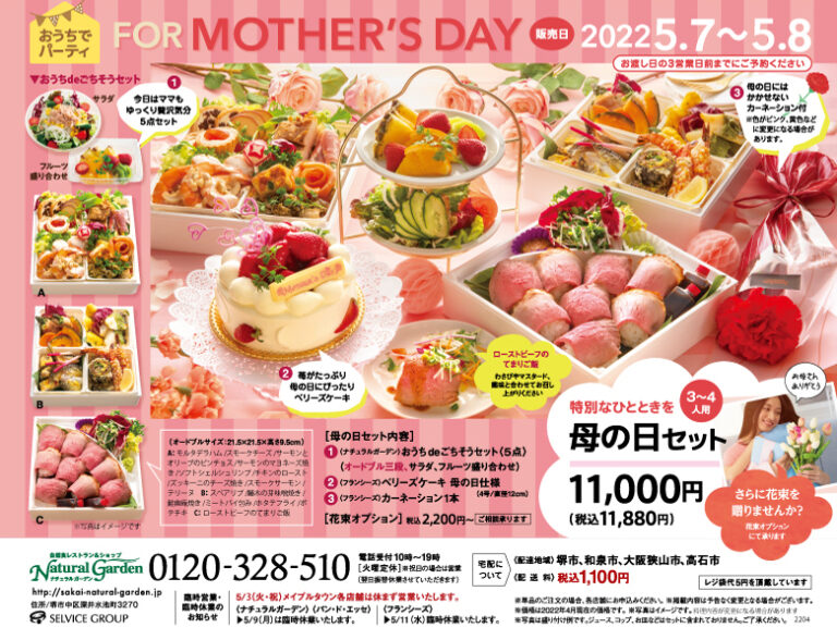 メイプルタウンの『ナチュラルガーデン』『フランシーズ』がコラボした限定の「母の日セット」が今年も販売されます。