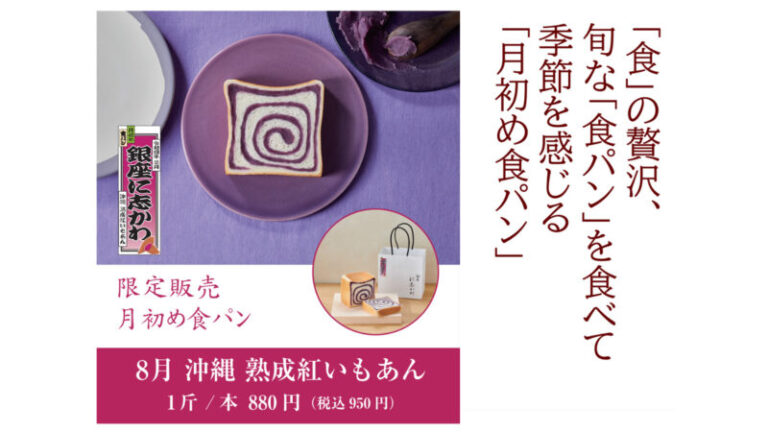 8月の月初め食パンは「沖縄熟成紅いもあん食パン」です。