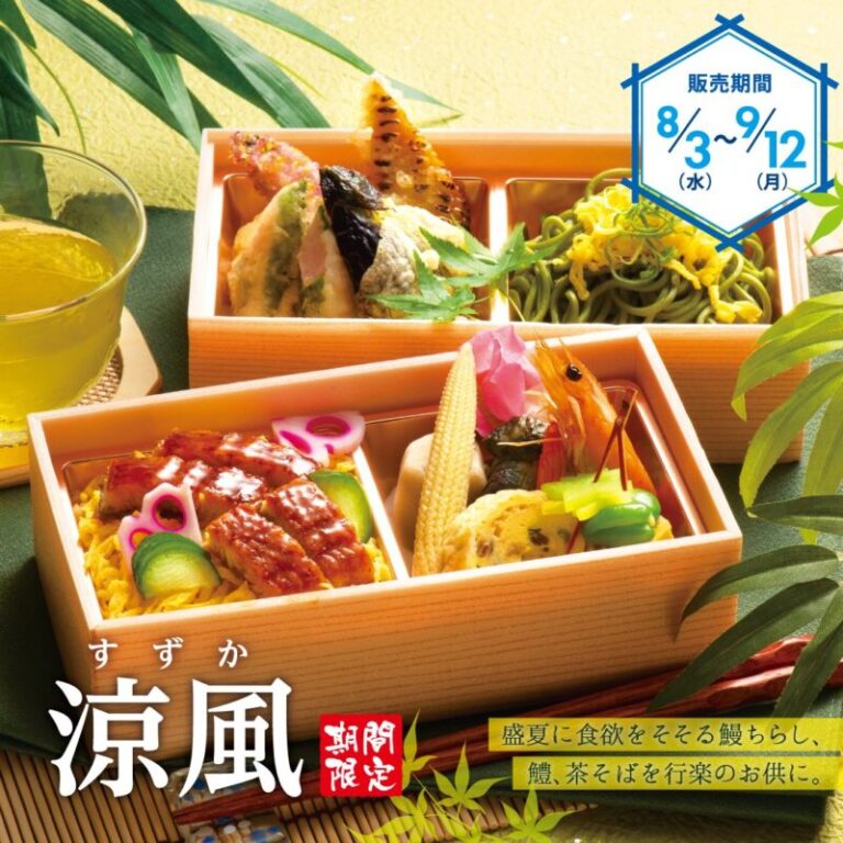 盛夏に食欲をそそる鰻ちらし、茶そばなどを、上品かつ色鮮やかに盛り付けた季節弁当です。