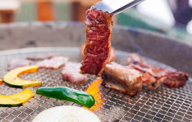国産リブロース・カルビ・牛肉のプロシェット・海鮮のプロシェット・がいな鶏もも肉・ベーコンアスパラ巻・つくね・ウィンナー・厚揚げ・茄子・キャベツ・エリンギ・とうもろこし・万願寺ししとう・さつま芋・パプリカ