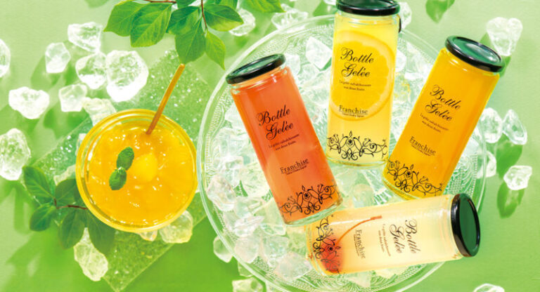 果肉も入ったフルーティーなジュレを厳選した素材を使い、ボトル入りのおしゃれなジュレに仕立てています