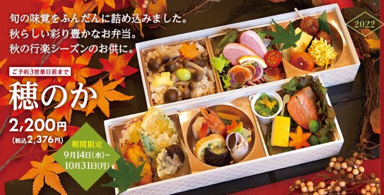堺市中区・メイプルタウンの『自然食レストラン&ショップ ナチュラルガーデン』にて、9/14より秋の味覚弁当「穂のか(ほのか)」の販売がスタートします!