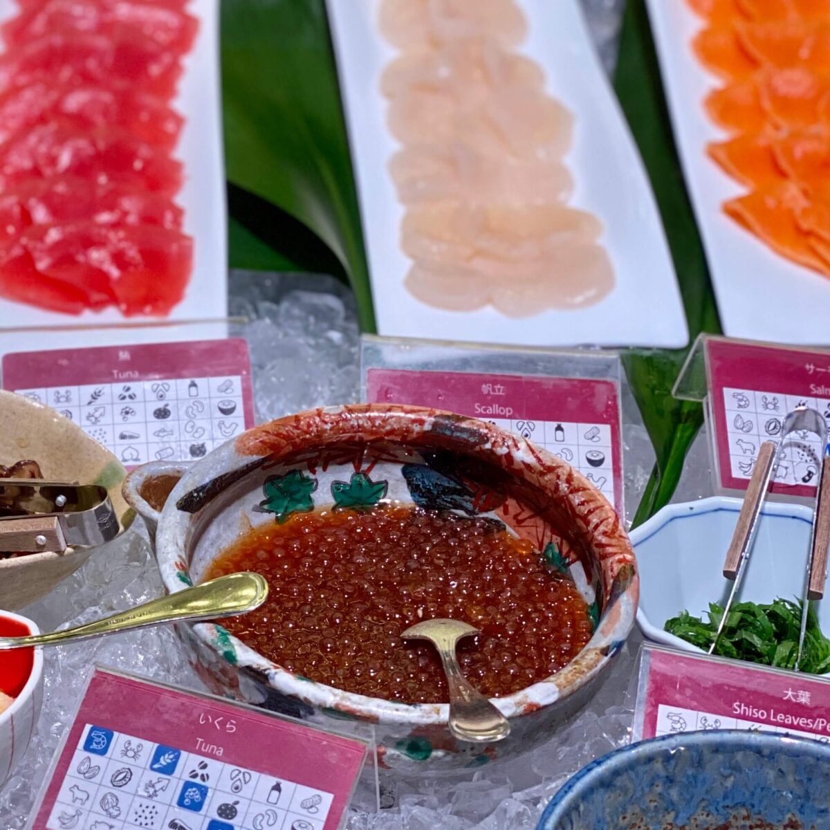さて、こちらも人気のコーナー。サーモン、マグロ、ホタテ、エビ、イクラなどの新鮮な海産物を自由に組み合わせて、オリジナルの海鮮丼を作ることができます。