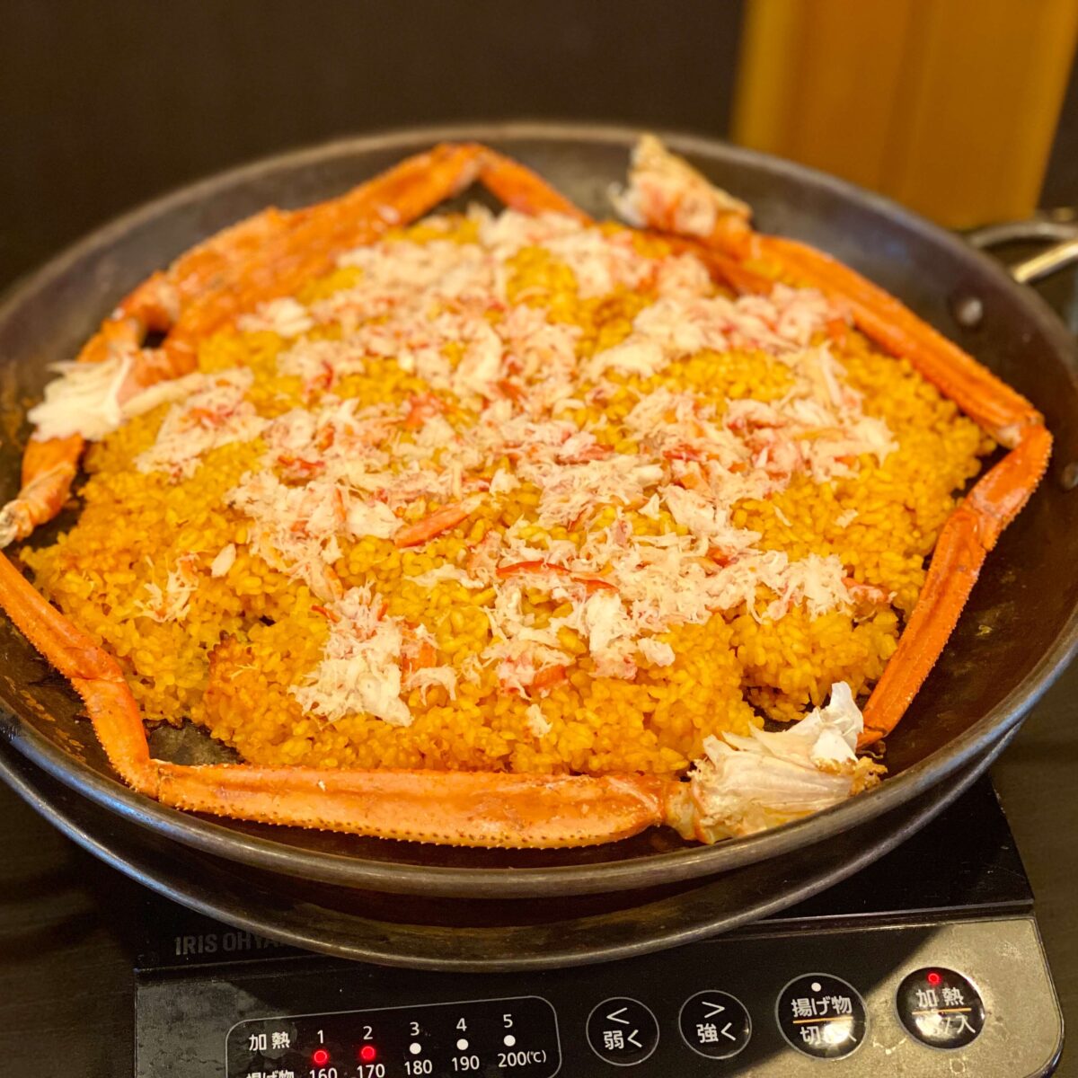 パエリアは蟹の身がたっぷり