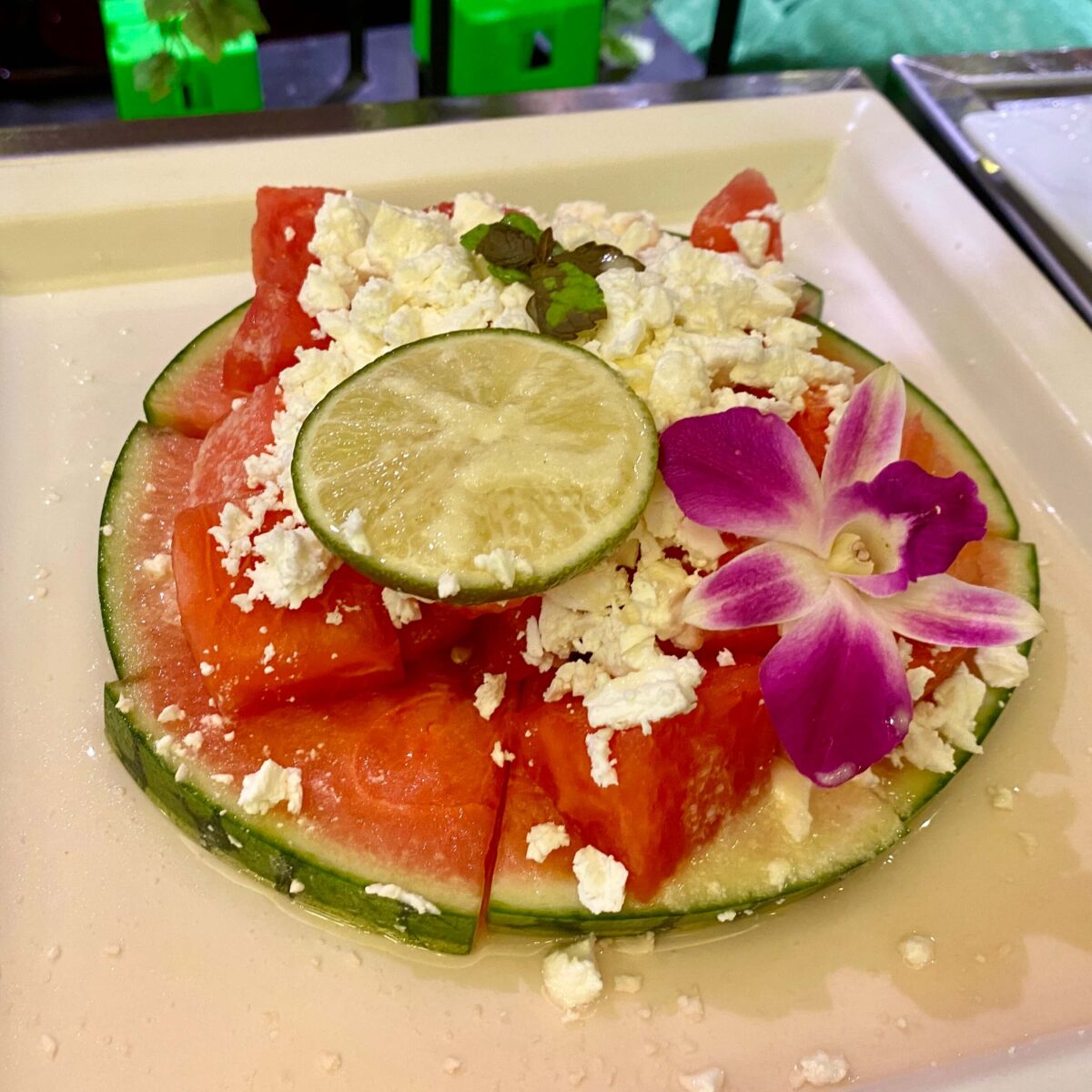 シーフードサラダ/西瓜とフェタチーズのサラダ ギリシャ風/鯵のカルパッチョ ガルムソース/蛸のガリシア風マリネ/鮪の生ハム/蒸し鶏の明太子ソース/スモークサーモントラウトとポテトアイオリ/パンペルデュと生ハム