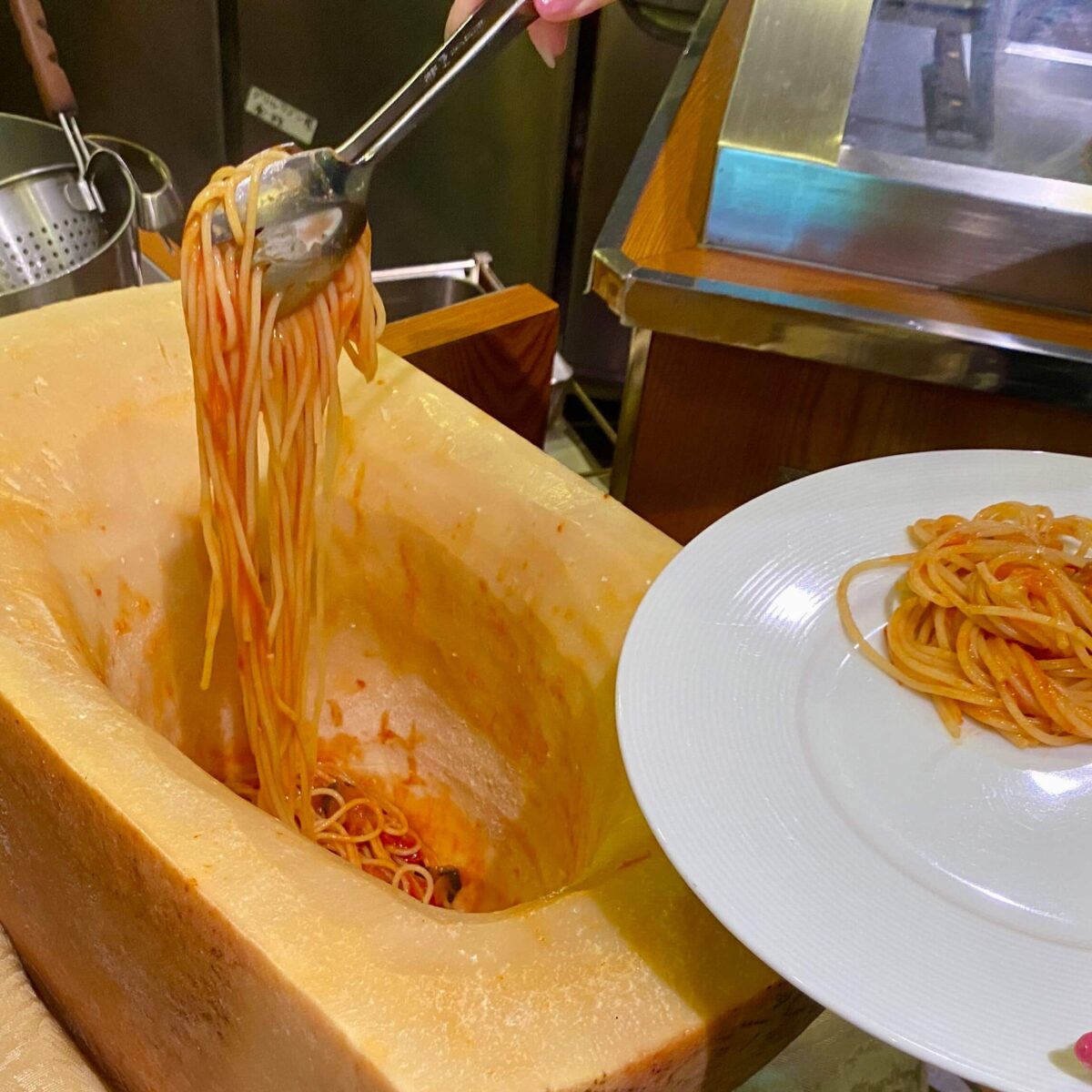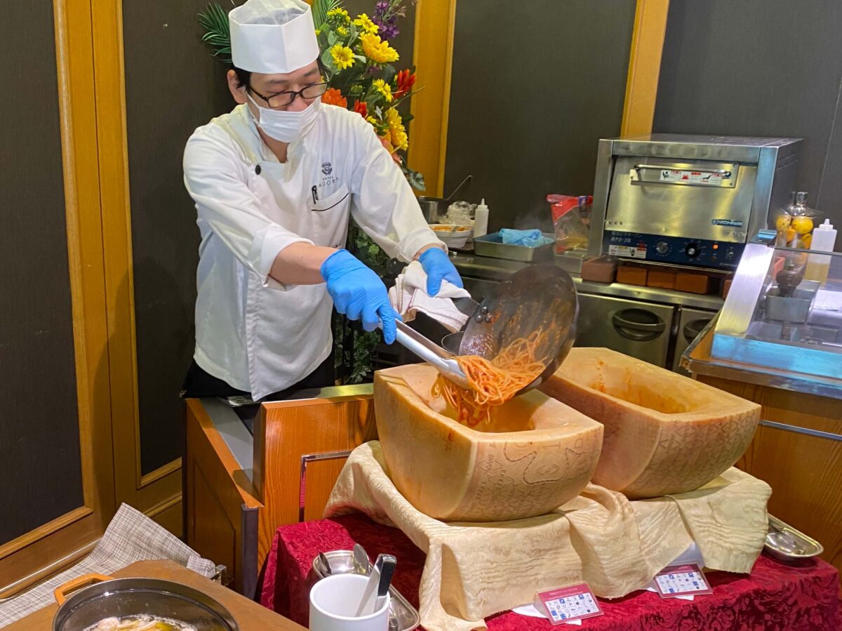 ビュッフェの一角にあるライブキッチンでは、シェフが目の前で調理をしてくれます。