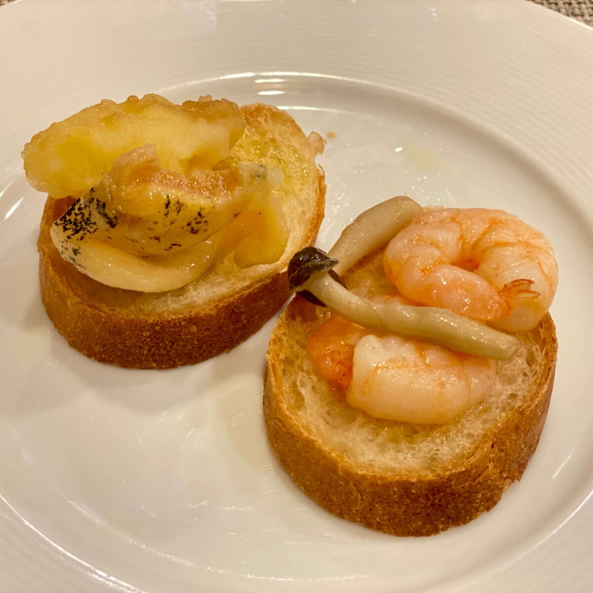 さざえの壺焼き紫蘇風味/白身魚とあさりのドライトマトとオリーブ風味