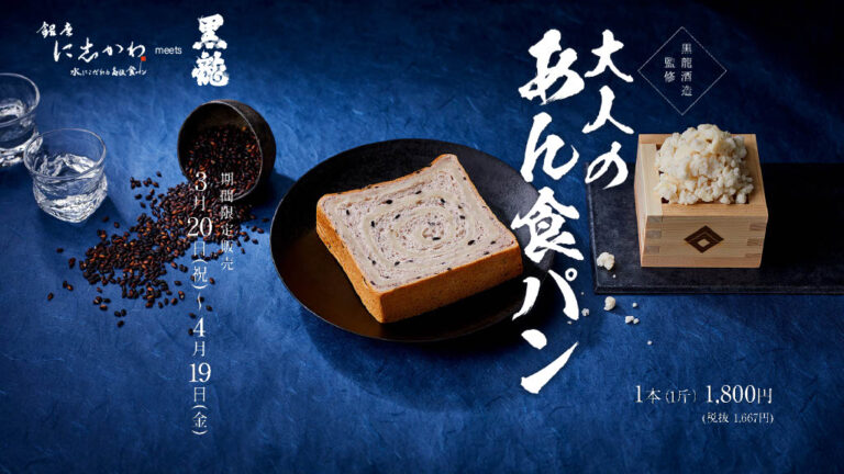 高級食パン専門店『銀座に志かわ 堺東店』では、3月20日(水)~4月19日(金)までの期間限定で「黒龍酒造監修 大人のあん食パン」を販売中です。