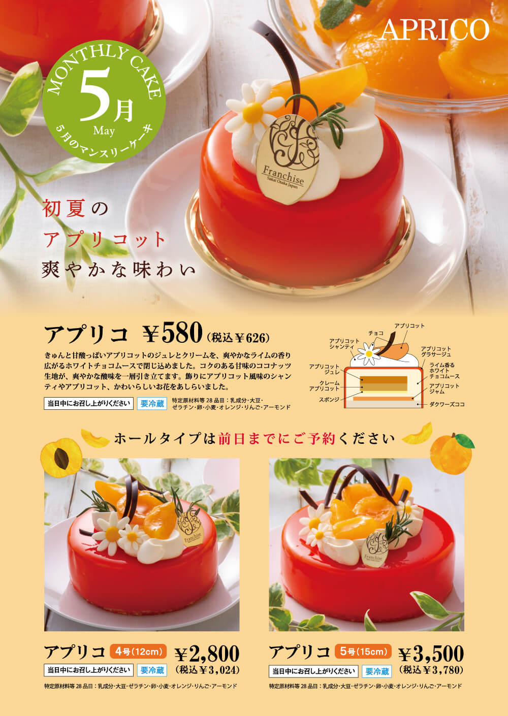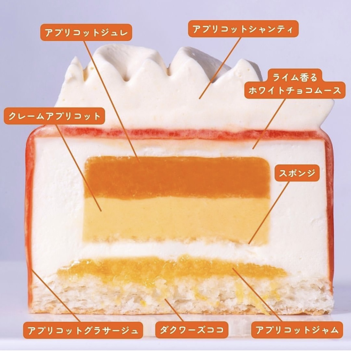 きゅんと甘酸っぱいアプリコットジュレのクリームを爽やかなライムの香り広がるホワイトチョコムースで閉じ込めました!