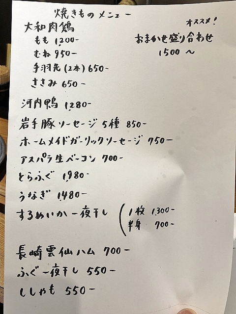 焼き物はおまかせ盛り合わせ1900円。
