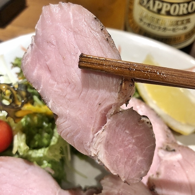 あまりの嬉しさにビールが進み追加でやまと豚のローストポーク780円。