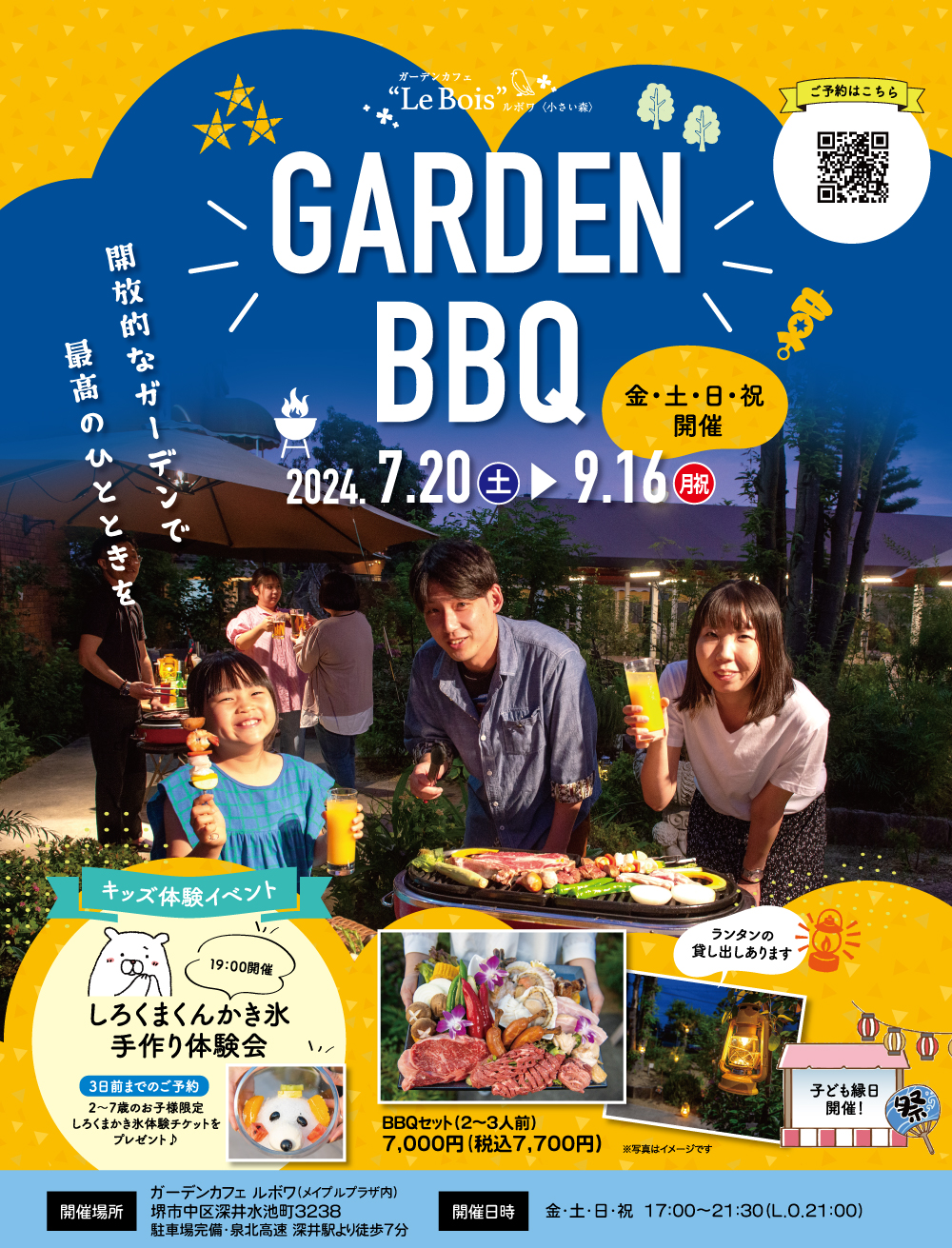 堺市中区の「ガーデンカフェ ルボワ」では、今年も夏季限定のガーデンバーベキューが開催されます!