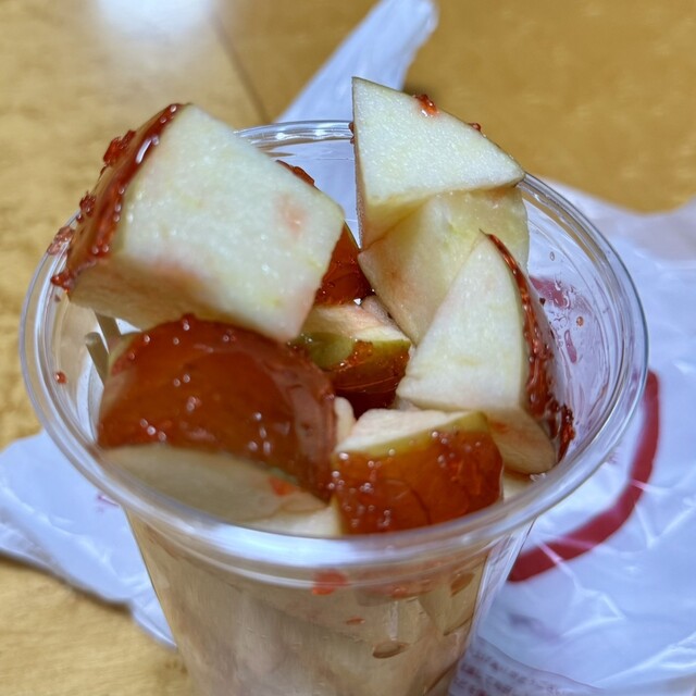 りんごの上に飴が掛かっていて