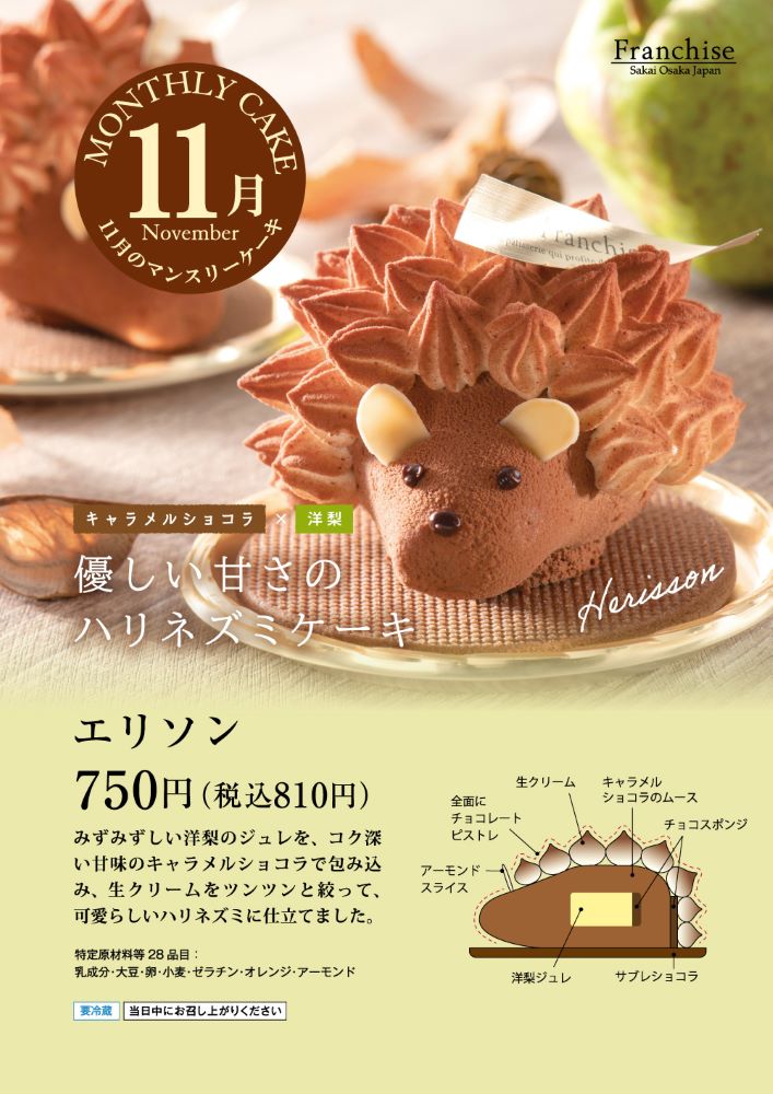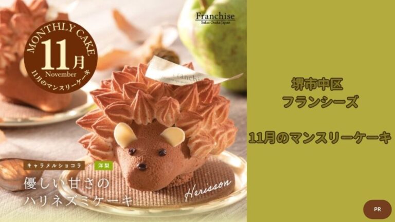 堺市中区の深井駅から徒歩8分。メイプルタウンの人気スイーツ店『フランシーズ』では、毎月限定のマンスリーケーキを販売しています。