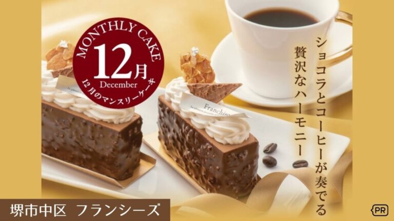 堺市中区の深井駅から徒歩8分。メイプルタウンの人気スイーツ店『フランシーズ』では、毎月限定のマンスリーケーキを販売しています。
