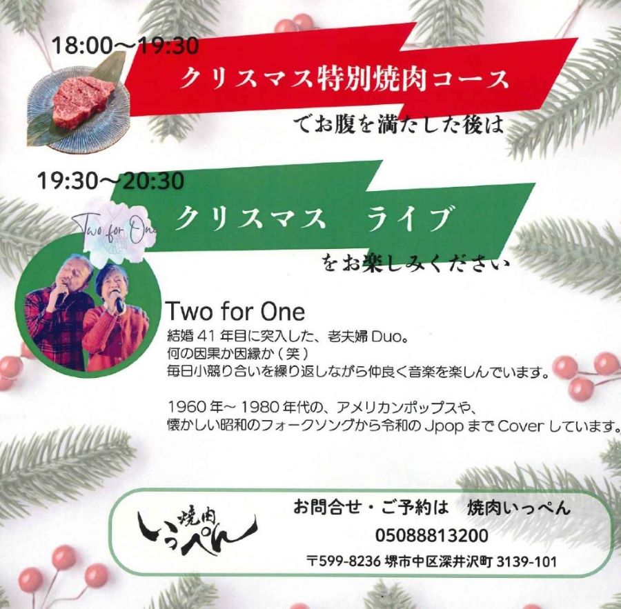 『クリスマスLIVE & 特別焼肉コース』が開催されますよ☆彡