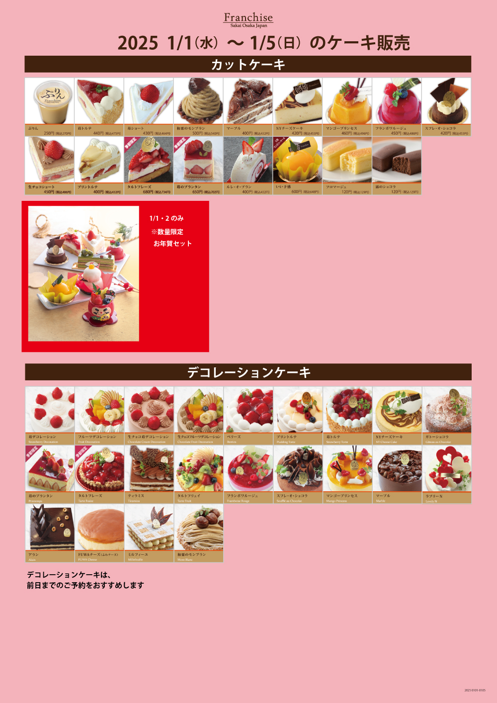 【2日間限定販売のケーキセットも!】新春を彩るかわいいお年賀スイーツが登場します♪@堺市中区フランシーズ