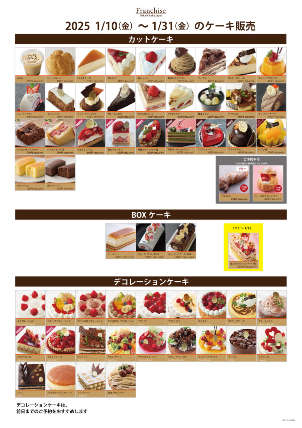 堺市中区の人気スイーツショップ「フランシーズ」では、年末年始の期間によってケーキのラインナップが変わります。フランシーズの特別なケーキをお楽しみに!