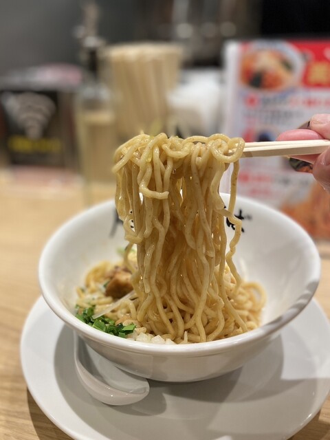 先輩注文したトッピングのにんにくオイルで、一気にパンチ出る~