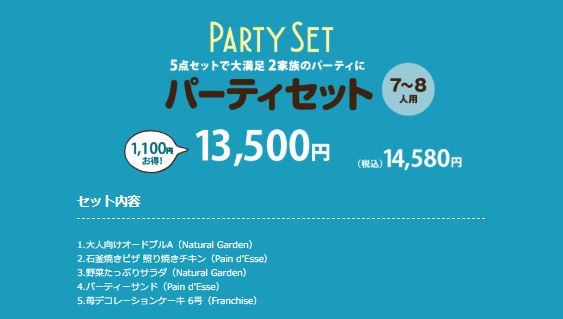 パーティセット(7~8人用)13,500円 (税込)14,580円