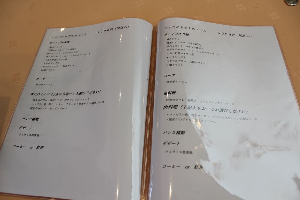 シェフのおすすめコースは、3,000円(税込)のコースと、メインの肉料理と魚料理両方が楽しめる4,000円(税込)があります!