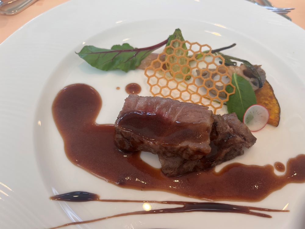 お肉料理には、メスのホルスタインとオスの黒毛和種を掛け合わせたF1ランクの肉を使用!