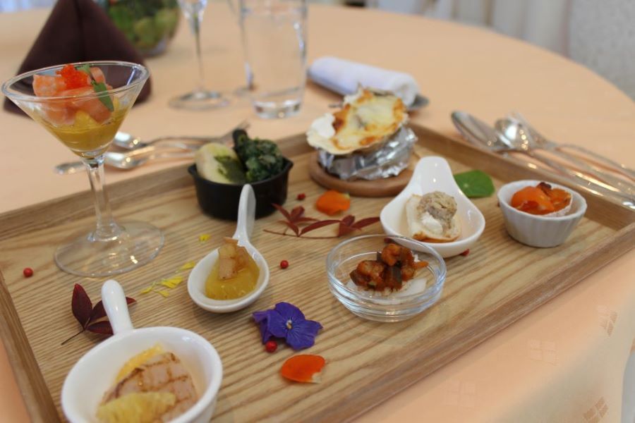 オードブルのお盆の上の飾りは季節によって変わり、自然な感じをイメージしているそうです!