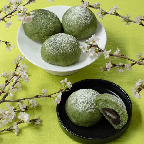 生クリームたっぷりの「極」生地に、よもぎを練り込み、粒あんと求肥を包んだ春の一品。