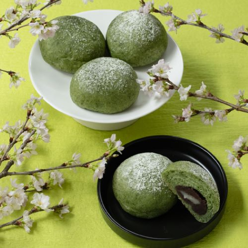 生クリームをたっぷり使用した『極』の生地によもぎを練り込み、粒あんと求肥を包みました。春から夏の移り変わりを感じられる一品です。