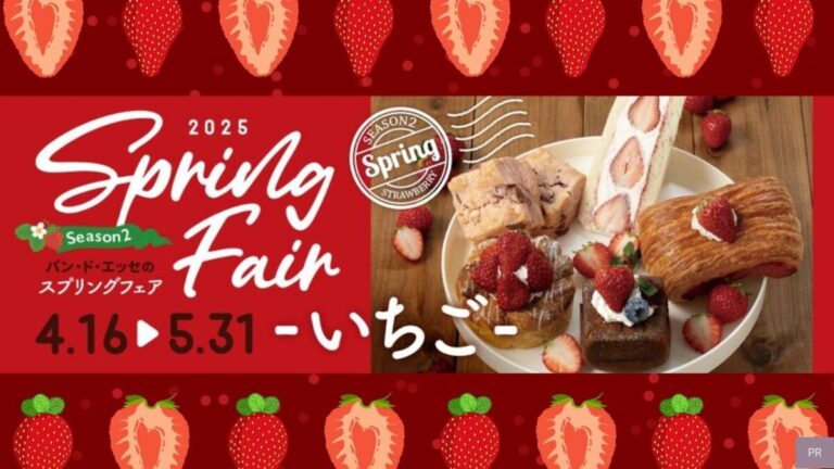 春にぴったりな「いちご」をテーマにしたパン・ド・エッセのスプリングフェアが開催! 期間限定の特別なパンやスイーツをお楽しみください。