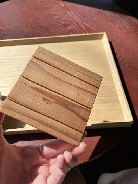 食後に、杉で作られたコースターはそのままお持ち帰りして良いそうです。