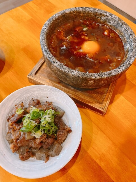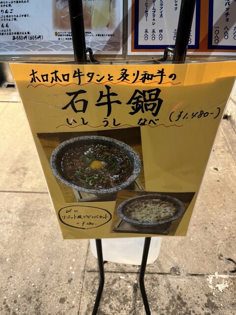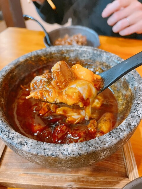 石牛鍋(いしうしなべ)って初めてききましたが、グツグツした石鍋の中にほろっほろの牛タンと炙り和牛が入っていて、意外とビーフシチューっぽい洋風の味!