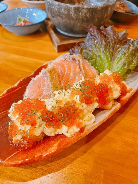 たっぷりのいくらとタルタルと柔らかなレアカツを一緒に食べると口の中がしあわせいっぱい♡