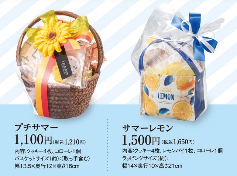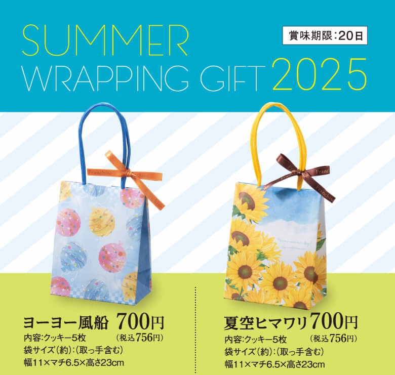 堺市中区の深井駅から徒歩8分。メイプルタウンの人気スイーツ店『フランシーズ』では、ちょっとした手土産にもぴったりな「SUMMER WRAPPING GIFT 2025」が登場しています。