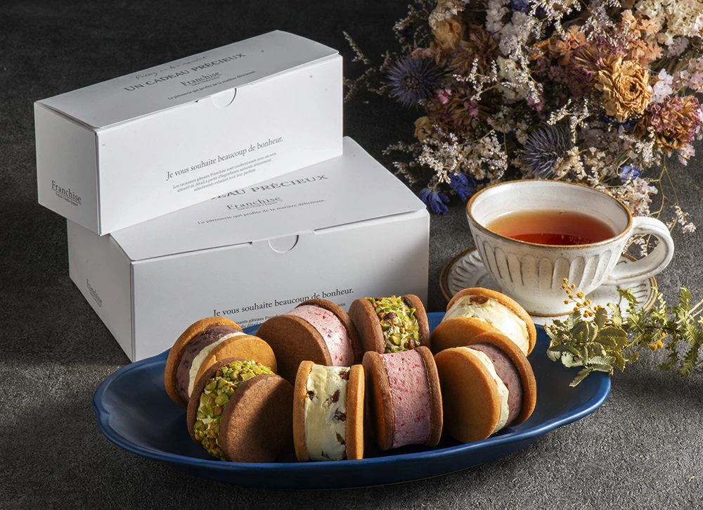 濃厚でリッチなバタークリームを4種のフレーバーに合わせ、「フランシーズ」で人気のクッキーでサンドしました。